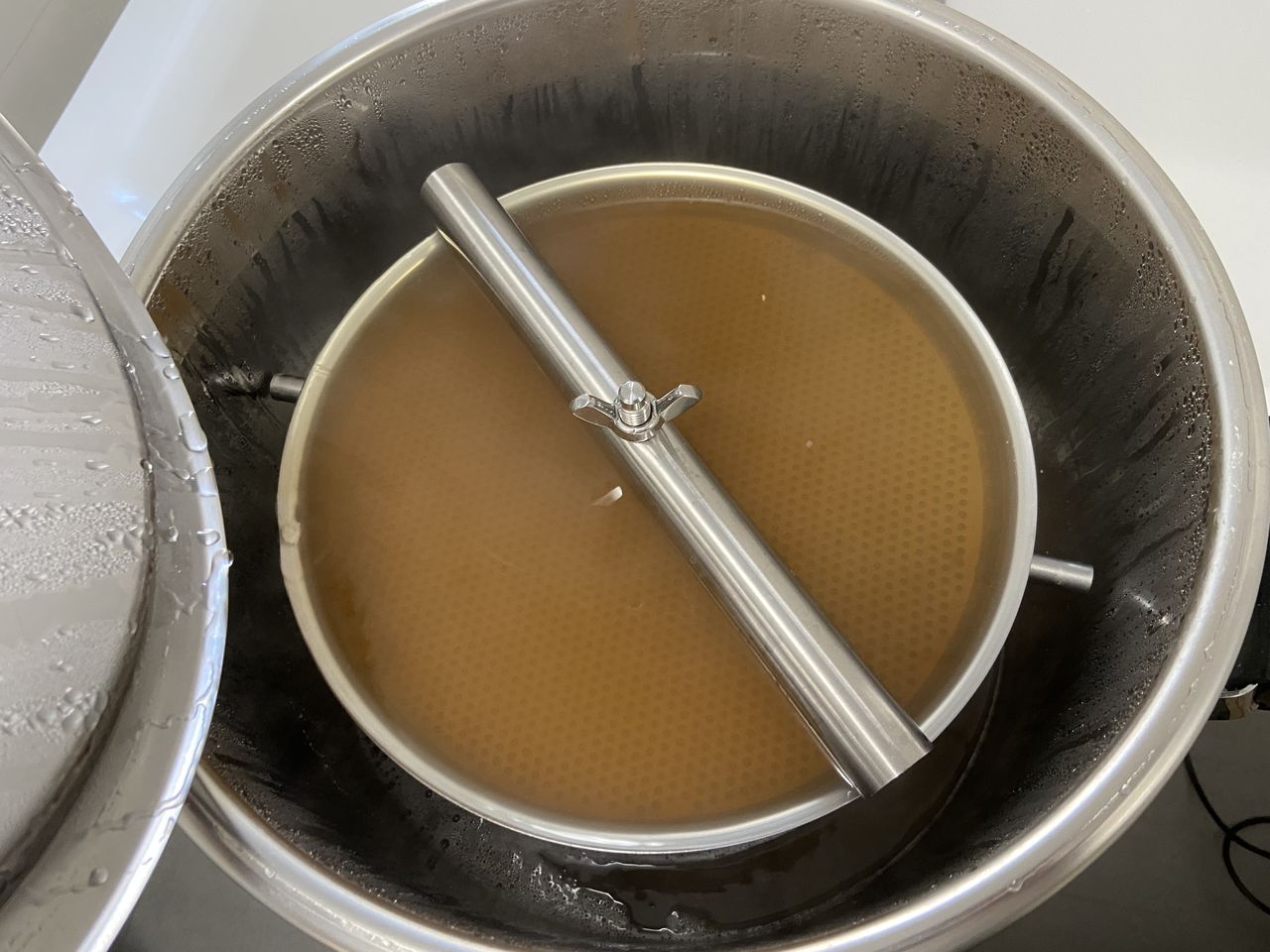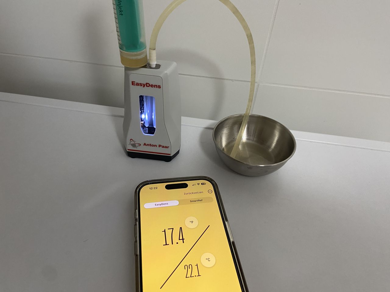 Am Ende hatten wir 20 Liter mit 17,4 °P im Gäreimer.