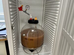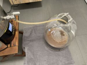 Vergoren wird mit 1 Packung LalBrew BRY-97 bei 18 °C. Am Ende hatten wir 21 Liter mit 13,3 °P.