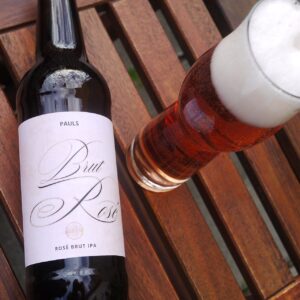 Die wunderschön-zuckerlrosa Farbe unseres Rosé Brut IPA kommt auf den Fotos leider nicht richtig rüber – in Natura schaut das Bier viel geiler aus! Durch die Gärung unter Druck in den Fässern fehlt auch der Bodensatz aus den Flaschen und das Bier ist sehr klar. Der Schaum ist auch leicht rosa, allerdings nicht sehr beständig.